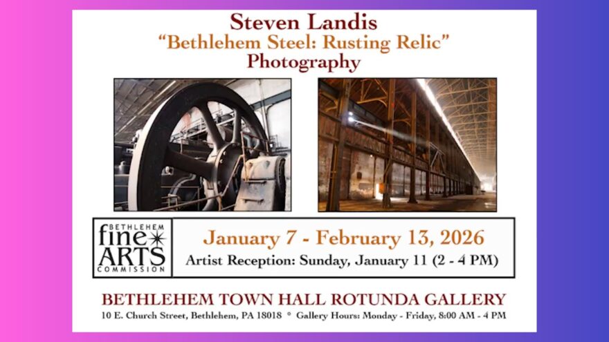 Lehigh Valley photographer Steven Landis returns to Bethlehem with a powerful new exhibition, “Bethlehem Steel: Rusting Relic,” on view at the Bethlehem Town Hall Rotunda Gallery from January 7 through February 13, 2026. Presented by the Bethlehem Fine Arts Commission (bfac-lv.org), the show revisits the industrial remains of the city’s most iconic landmark through a lens that blends architecture, history, and emotion.