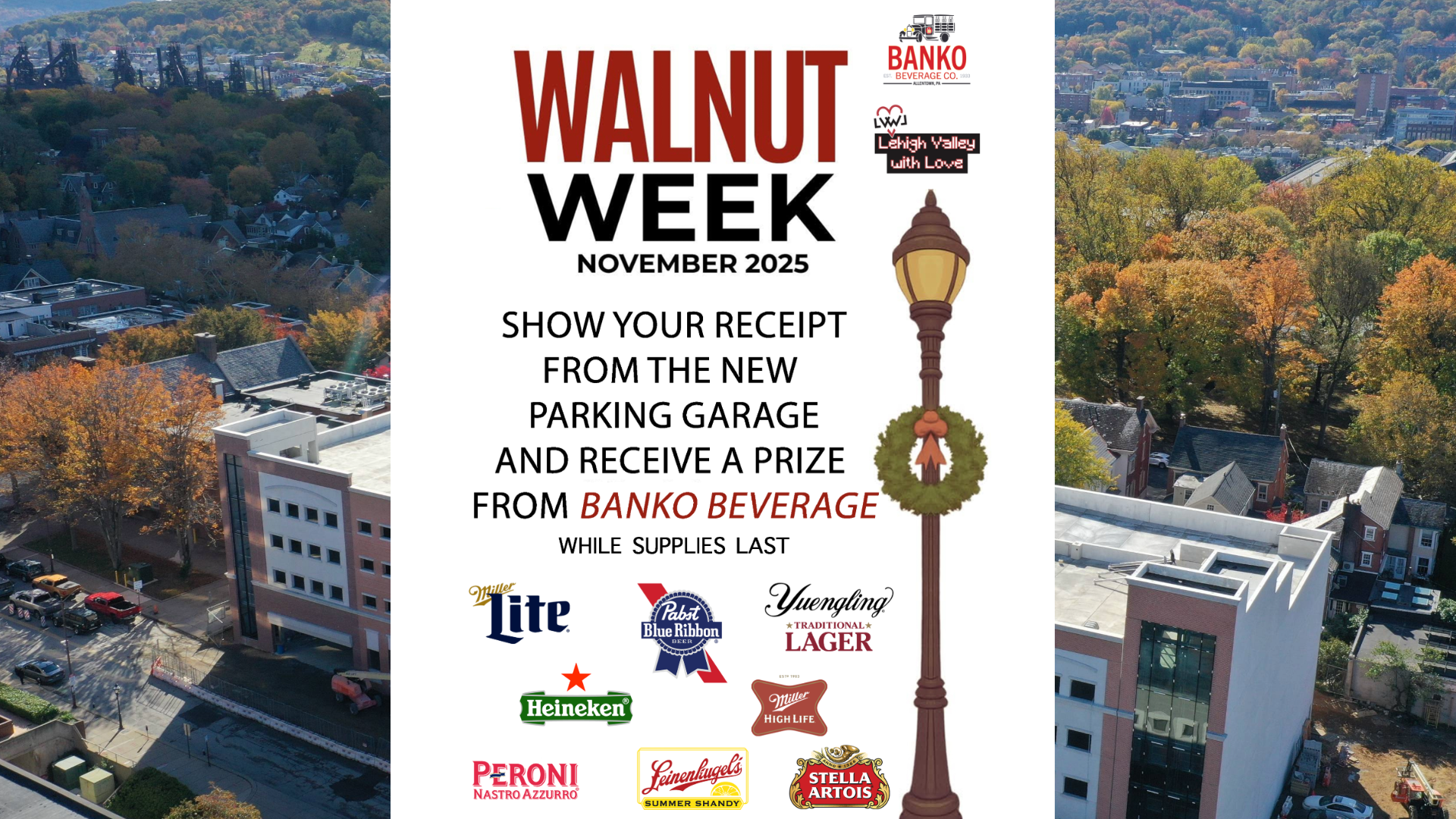 Banko Beverage Company is marking Walnut Week (November 17 – 21) in downtown Bethlehem with a special giveaway tied to the city’s new Walnut Street Garage.