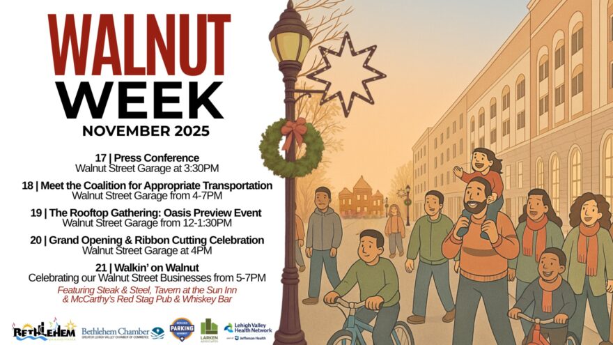 Bethlehem is ushering in the holiday season with Walnut Week, a community-wide celebration marking the grand opening of the new Walnut Street Garage in downtown Bethlehem. From November 17–21, the city will host a series of events highlighting accessibility, connection, and the festive spirit that defines the Christmas City.