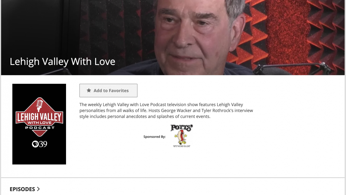 The Lehigh Valley with Love Podcast with co-hosts Tyler Rothrock and George Wacker now has a television show version on PBS 39 airing at Fridays on midnight through mid-August 2019.