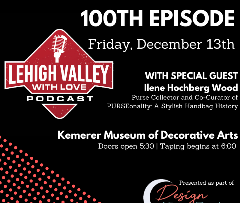 BETHLEHEM, PA, November 2019 – Historic Bethlehem Museums & Sites (HBMS) and Lehigh Valley With Love Podcast are partnering up for the podcast’s 100th episode. On Friday, December 13, hosts George Wacker and Tyler Rothrock will host a live taping of the podcast at the Kemerer Museum of Decorative Arts as part of Design After Dark, HBMS’s after-hours programming series. The podcast will feature local collector and philanthropist Ilene Hochberg Wood as the guest.