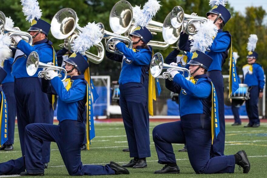 The lineup includes performances from Caldwell University, Lehigh University’s Marching 97, West Chester University, University of Delaware, Towson University, and many more. The schedule begins with the National Anthem at 11:55 a.m. and runs continuously until the final performance at 4:45 p.m. by the University of New Haven.