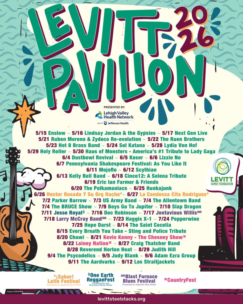 “We’re excited to kick off our 16th season with a lineup that truly has something for everyone,” said Cory Stevens, Executive Director of Levitt Pavilion SteelStacks. He said the summer will focus on “celebrating community, discovery and the joy of live music.”