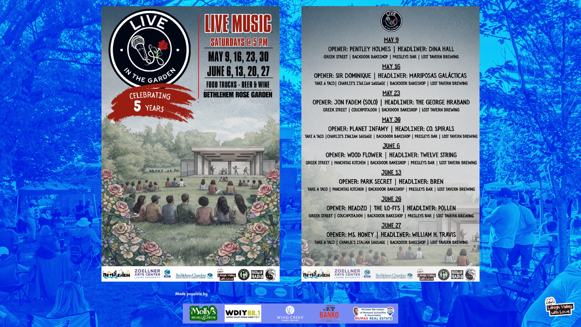 Live in the Garden is coming back to Bethlehem for its fifth season, bringing another run of free Saturday night concerts to the Rose Garden on the city’s West Side.