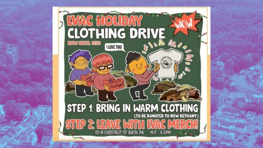 Now through December 31, LVAC is hosting its annual Holiday Clothing Drive at 151 N. Chestnut St., Bath, PA. The deal is simple and very on-brand: