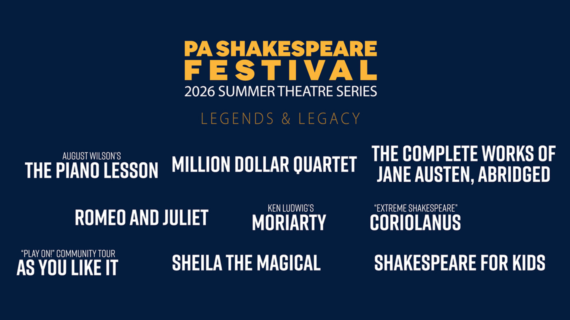 Subscriptions for the 2026 season open November 17 at pashakespeare.org or by phone at 610.282.WILL [9455], with single tickets available in February 2026. Sponsors for the season are Kathleen Kund Nolan and Timothy E. Nolan.