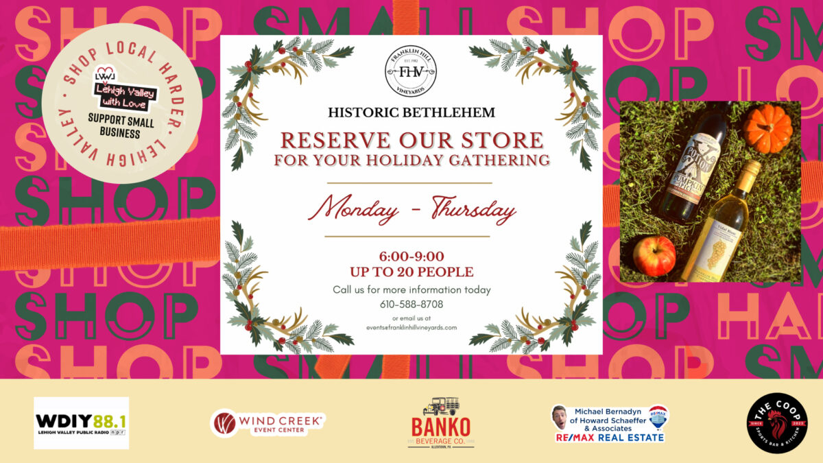 As part of the Shop Local Harder series, we’re talking with John from Franklin Hill Vineyards about their rich history as the Lehigh Valley’s oldest vineyard. 🍇 From their famous Sir Walter’s Red to festive mulled wine, they’re offering unique ways to celebrate the holiday season.