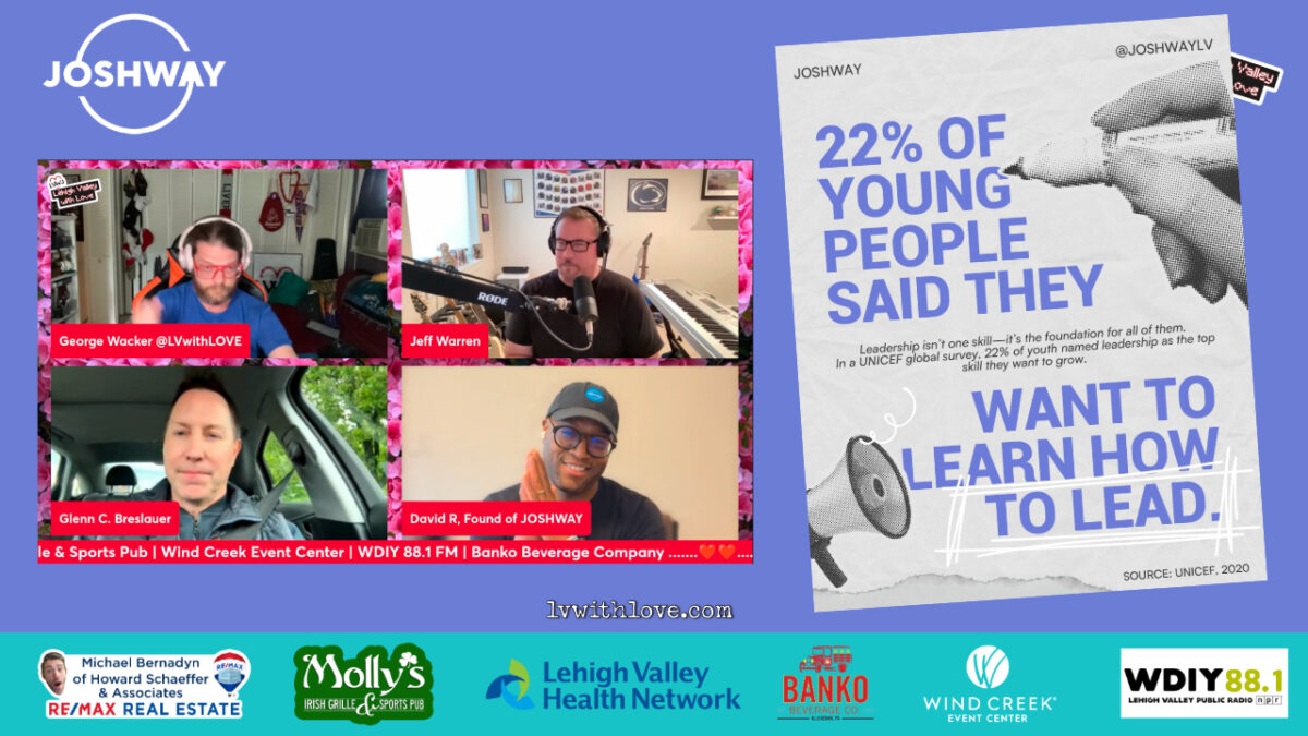 In this episode of the Lehigh Valley with Love: Off the Record podcast, hosts George Wacker and Jeff Warren sit down with David Robertson and Glenn Breslauer of JOSHWAY, a new nonprofit based in Easton, Pennsylvania that’s using technology, collaboration, and lived experience to connect with and uplift the youth of Northampton County and beyond.