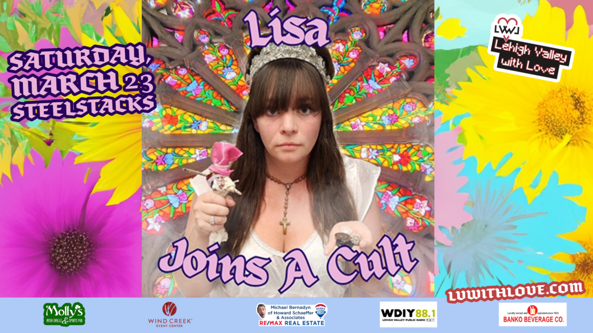 Lisa approaches the complexity of cults and the people inside these communities with tenderness and humor, sharing a side of humanity many outsiders don’t get to see. Lisa has performed standup on three continents, but mostly here in the Lehigh Valley. She is also probably the only human to own both Mormon underwear and a Moonie crown and she’s obnoxiously proud of that.