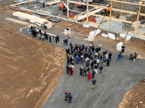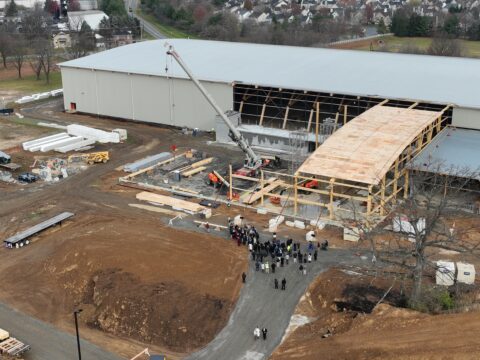 Upper Macungie Township has reached a major milestone in the construction of its new Community Lifestyle Center at Grange Park, celebrating the timber topping-off of the 188,000-square-foot facility on November 20, 2025. Township officials, community leaders, business representatives, and construction partners gathered on site to sign and lift a structural timber beam into place, marking the project’s steady progress toward completion next summer.
