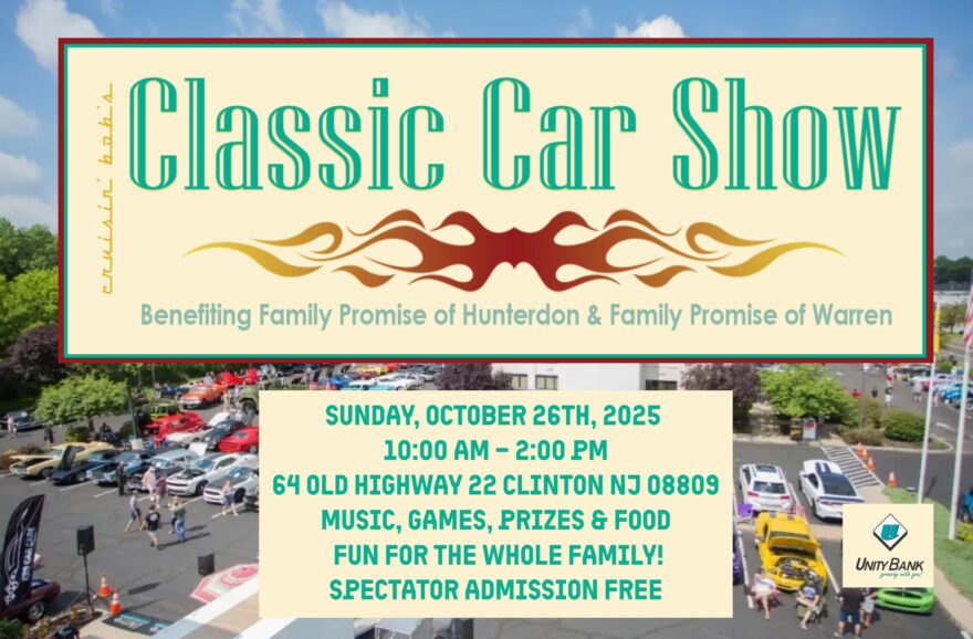 Get ready for a day of chrome, classics, and community. Unity Bank will host its annual Charity Classic Car Show on Sunday, October 26, 2025, from 10 a.m. to 2 p.m. at the bank’s headquarters, 64 Old Highway 22, Clinton, NJ. The event is free for spectators and open to all ages.